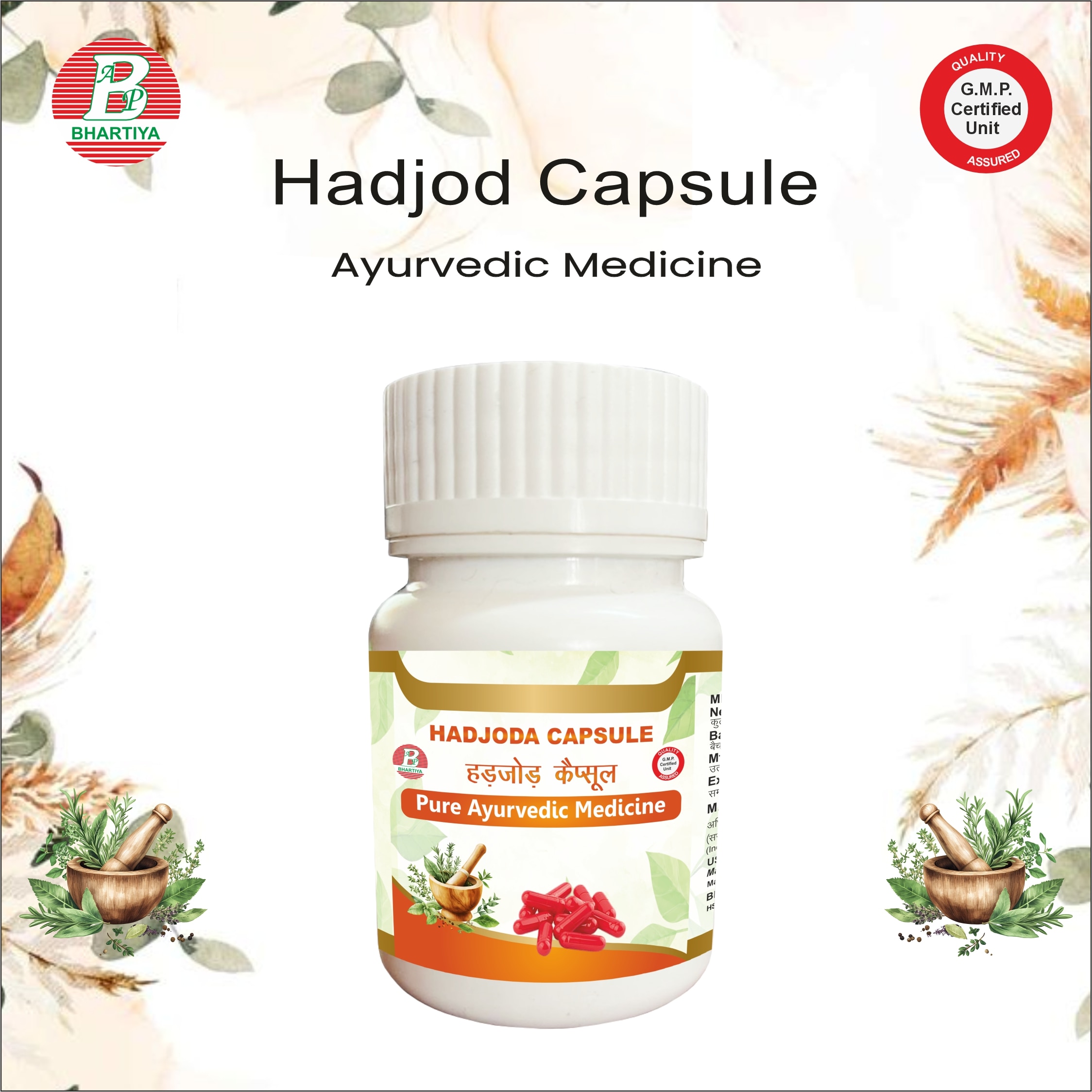 HADJOD HADJOD (Cissus quadrangularis L.) The Bone-Healer & Fracture-Repair Herb — “Asthisamhara / Vajravalli” Hadjod is one of the most renowned bone-strengthening and fracture-healing herbs in Ayurveda. Revered for its powerful Asthi-poshaka (bone-nourishing) and Sandhaniya (tissue-joining) properties, Hadjod accelerates fracture healing, strengthens bones and joints, and supports musculoskeletal integrity. It is widely used in fractures, osteoporosis, ligament injuries, and joint disorders. CLASSICAL AYURVEDIC REFERENCES Charaka Samhita • Mentioned under Sandhaniya Dravyas for healing fractures and tissue injuries. • Described as Balya, Bhagna-sandhanakara (fracture uniting), and Vata-shamaka. Sushruta Samhita • Extensively used in Bhagna Chikitsa (fracture management). • Recommended in fractures, dislocations, ligament tears, and post-surgical bone healing. Bhavaprakasha Nighantu • Described as Asthisandhani, Balya, Vatahara, and Shothahara. • Promoted for strengthening bones, tendons, and muscles. CLASSICAL STORY / ANECDOTE Ayurvedic lore describes Hadjod as a plant that “rejoins what is broken.” Traditional Vaidyas observed that even broken stems of Hadjod reattach and grow vigorously, inspiring its name Asthisamhara— “that which unites bones.” Forest healers applied Hadjod paste externally on fractures while administering decoctions internally for rapid healing. BOTANICAL INFORMATION OF HADJOD • Scientific Name: Cissus quadrangularis L. • Family: Vitaceae • Order: Vitales • Genus: Cissus • Species: quadrangularis Common Names: • Sanskrit: Asthisamhara, Vajravalli • Hindi: Hadjod • English: Bone Setter, Devil’s Backbone • Tamil: Pirandai • Telugu: Nalleru • Malayalam: Changalamparanda • Kannada: Mangarahalli • Bengali: Harjora SYNONYMS IN CLASSICAL AYURVEDIC NIGHANTUS • Charaka Samhita: Asthisamhara – Sandhaniya, Balya • Sushruta Samhita: Vajravalli – Bhagna-sandhanakara • Bhavaprakasha Nighantu: Hadjod – Vatahara, Shothahara MORPHOLOGY OF HADJOD • Plant Type: Perennial climber • Stem: Fleshy, quadrangular, jointed • Leaves: Simple, ovate, fleshy • Flowers: Small, greenish-white • Fruit: Small, red berry • Taste: Astringent, slightly sour ECOLOGICAL PREFERENCES • Climate: Tropical and subtropical • Soil: Well-drained sandy or loamy soil • Habitat: Hedges, dry forests, wastelands • Sunlight: Full sun to partial shade • Altitude: Up to 900 m GEOGRAPHICAL DISTRIBUTION • India: Tamil Nadu, Kerala, Andhra Pradesh, Maharashtra, Rajasthan, Madhya Pradesh • Outside India: Sri Lanka, Africa, Southeast Asia CLASSICAL AYURVEDIC PROPERTIES (RASA–GUNA–VIRYA–VIPAKA) • Rasa (Taste): Kashaya (astringent), Amla (sour) • Guna (Qualities): Laghu (light), Ruksha (dry) • Virya (Potency): Ushna (heating) • Vipaka (post-digestive effect): Katu (pungent) Dosha Effects: • Vata–Kapha hara • May increase Pitta if used excessively THERAPEUTIC ACTIONS (KARMA) • Sandhaniya – Promotes fracture and tissue healing • Asthi-poshaka – Nourishes bones • Shothahara – Reduces inflammation • Vedanasthapana – Relieves pain • Balya – Strengthens muscles and joints • Vranaropana – Supports wound healing INDICATIONS • Bone fractures and hairline cracks • Osteoporosis and osteopenia • Joint pain, arthritis, and ligament injuries • Post-surgical bone recovery • Back pain and cervical/lumbar spondylosis • Sports injuries MODERN PHARMACOLOGY & PHYTOCHEMISTRY Major Constituents: Calcium, phosphorus Ketosteroidso Flavonoids Triterpenoids Ascorbic acid Pharmacological Actions: Accelerates fracture healing Enhances bone mineralization Anti-inflammatory Analgesic Anti-osteoporotic CULTIVATION DETAILS • Propagation: Stem cuttings • Planting Season: Monsoon • Spacing: 1.5–2 m • Irrigation: Low to moderate • Harvesting: After 6–8 months CLASSICAL DOSAGE (According to Ayurvedic Practice) • Powder (Churna): 3–6 g/day • Decoction (Kwatha): 40–80 ml/day • Fresh Stem Juice: 10–20 ml/day • External Paste: As required Hadjod (Cissus quadrangularis) Formulations – Bhartiya Ayurvedic Pharmacy Bhartiya Ayurvedic Pharmacy prepares authentic Hadjod formulations based on classical Ayurvedic texts, ensuring optimal bone-healing, Vata-balancing, and musculoskeletal support. HADJOD CAPSULE 🌿 Hadjod Capsules are prepared using premium quality Cissus quadrangularis stem powder / standardized extract following classical Ayurvedic processing methods. Key Benefits: • Accelerates fracture healing • Strengthens bones and joints • Reduces pain and inflammation • Supports osteoporosis management • Improves mobility and recovery Dosage: • Adults: 1–2 capsules twice daily with warm water or milk • Or as directed by an Ayurvedic physician Safety & Precautions: • Safe for long-term use under guidance • Use cautiously in high Pitta conditions • Suitable during fracture recovery Formulation Highlights: • 100% pure Hadjod stem extract • No artificial additives or preservatives • Prepared using classical Ayurvedic principles Suggested Use: • Ideal for fractures, weak bones, joint disorders, and post-injury rehabilitation HADJOD POWDER Hadjod Powder is prepared from shade-dried, finely powdered stems of Cissus quadrangularis, preserving its natural bone-healing potency. Key Benefits: • Promotes rapid bone union • Strengthens ligaments and tendons • Reduces swelling and pain • Supports bone density Dosage: • Adults: 3–6 g daily • Take with warm milk, ghee, or water • Or as advised by an Ayurvedic physician Safety & Precautions: • Excess use may increase Pitta • Store in a cool, dry place Formulation Highlights: • 100% pure Hadjod stem powder • No chemicals, fillers, or preservatives • Traditionally processed Suggested Use: • Ideal for fractures, osteoporosis, joint pain, and musculoskeletal strength
