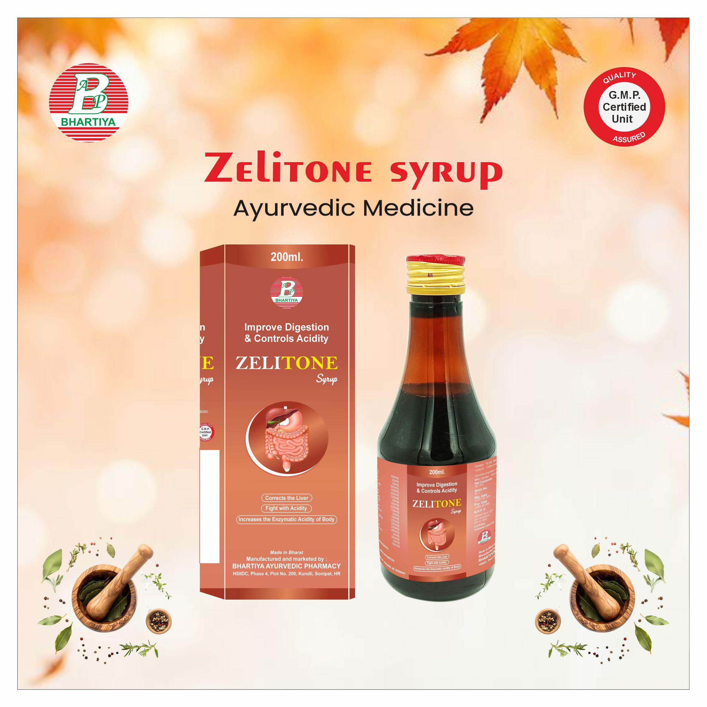 ZELITON SYRUP Product Identification • Generic Name: Zeliton Syrup • Type: Ayurvedic Patent Medicine • Primary Indication Area: Helps relieve indigestion, acidity, gas, and loss of appetite while promoting healthy digestion. Therapeutic Indications Zeliton Syrup is an Ayurvedic medicine that helps relieve indigestion, acidity, gas, and loss of appetite while promoting healthy digestion. Key benefits: • Relieves indigestion and acidity • Reduces gas and bloating • Stimulates appetite • Supports healthy digestion Ingredient: Saunth (Dry Ginger) Botanical Name: Zingiber officinale (Dry Ginger) Key Phytoconstituents: • Gingerols • Shogaols • Volatile oils • Flavonoids Mechanism of Action and Benefits: 1. Digestive Aid o Helps relieve indigestion, bloating, and gas. o Stimulates digestive enzymes, improving overall digestion. 2. Reduces Acidity & Heartburn o Soothes the stomach lining and balances gastric acid levels. o Provides relief from acid reflux and heartburn. Mirch Botanical Name: Piper nigrum (Black Pepper) / Piper longum (Long Pepper) Key Phytoconstituents: • Piperine – primary active compound • Essential oils • Alkaloids • Flavonoids Mechanism of Action and Benefits: 1. Digestive Stimulant o Enhances digestive enzyme secretion, aiding digestion. o Helps relieve indigestion, bloating, and gas. 2. Reduces Acidity o Balances gastric acid production to relieve heartburn and acidity. Pippali (Long Pepper) Botanical Name: Piper longum Key Phytoconstituents: • Piperine – main active compound • Essential oils • Alkaloids • Resins Mechanism of Action and Benefits: 1. Digestive Aid o Stimulates digestive enzymes, improving digestion and nutrient absorption. o Helps relieve indigestion, bloating, and gas. 2. Reduces Acidity o Balances gastric acid secretion to alleviate heartburn and acidity. Mulethi (Licorice) Botanical Name: Glycyrrhiza glabra Key Phytoconstituents: • Glycyrrhizin – main active compound • Flavonoids • Coumarins • Saponins Mechanism of Action and Benefits: 1. Digestive Aid o Soothes the gastrointestinal tract and helps relieve indigestion. o Promotes healthy digestion and reduces gastric irritation. 2. Reduces Acidity & Heartburn o Protects the stomach lining and balances gastric acid, alleviating acidity and heartburn. Lahsun (Garlic) Botanical Name: Allium sativum Key Phytoconstituents: • Allicin – primary active compound • Sulfur compounds • Flavonoids • Vitamins (C, B6) Mechanism of Action and Benefits: 1. Digestive Aid o Stimulates digestive enzymes, improving digestion and nutrient absorption. o Helps reduce indigestion and bloating. 2. Carminative Effect o Promotes the expulsion of intestinal gas, relieving discomfort. Amla (Indian Gooseberry) Botanical Name: Phyllanthus emblica (Emblica officinalis) Key Phytoconstituents: • Vitamin C – primary active compound • Tannins • Flavonoids • Polyphenols Mechanism of Action and Benefits: 1. Digestive Aid o Stimulates digestion and improves nutrient absorption. o Helps relieve indigestion and bloating. 2. Reduces Acidity o Balances gastric acid levels, providing relief from acid reflux and heartburn Haldi (Turmeric) Botanical Name: Curcuma longa Key Phytoconstituents: • Curcumin – primary active compound • Volatile oils • Tannins • Flavonoids Mechanism of Action and Benefits: 1. Digestive Aid o Stimulates bile production, improving digestion. o Helps relieve indigestion, bloating, and gas. 2. Reduces Acidity & Heartburn o Balances gastric acid levels and soothes the stomach lining. Dalchini (Cinnamon) Botanical Name: Cinnamomum verum / Cinnamomum zeylanicum Key Phytoconstituents: • Cinnamaldehyde – primary active compound • Essential oils • Polyphenols • Tannins Mechanism of Action and Benefits: 1. Digestive Aid o Stimulates digestive enzymes, improving digestion. o Helps relieve indigestion, bloating, and gas. 2. Reduces Acidity & Heartburn o Soothes the stomach lining and balances gastric acid levels. Giloy (Tinospora cordifolia) Botanical Name: Tinospora cordifolia Key Phytoconstituents: • Alkaloids (e.g., Berberine, Palmatine) • Diterpenoid lactones • Glycosides • Polysaccharides Mechanism of Action and Benefits: 1. Digestive Support o Helps in maintaining healthy digestion and improves nutrient absorption. o Reduces indigestion and bloating. 2. Reduces Acidity o Balances gastric acid levels, relieving acid reflux and heartburn. Punarnava (Boerhavia diffusa) Botanical Name: Boerhavia diffusa Key Phytoconstituents: • Alkaloids • Flavonoids • Lignans • Saponins Mechanism of Action and Benefits: 1. Digestive Support o Helps maintain healthy digestion and reduces bloating. o Mildly supports stomach comfort and intestinal health. 2. Reduces Acidity & Gas o Balances gastric acid levels, relieving acid reflux and heartburn. o Exhibits carminative properties, aiding in the expulsion of intestinal gas.