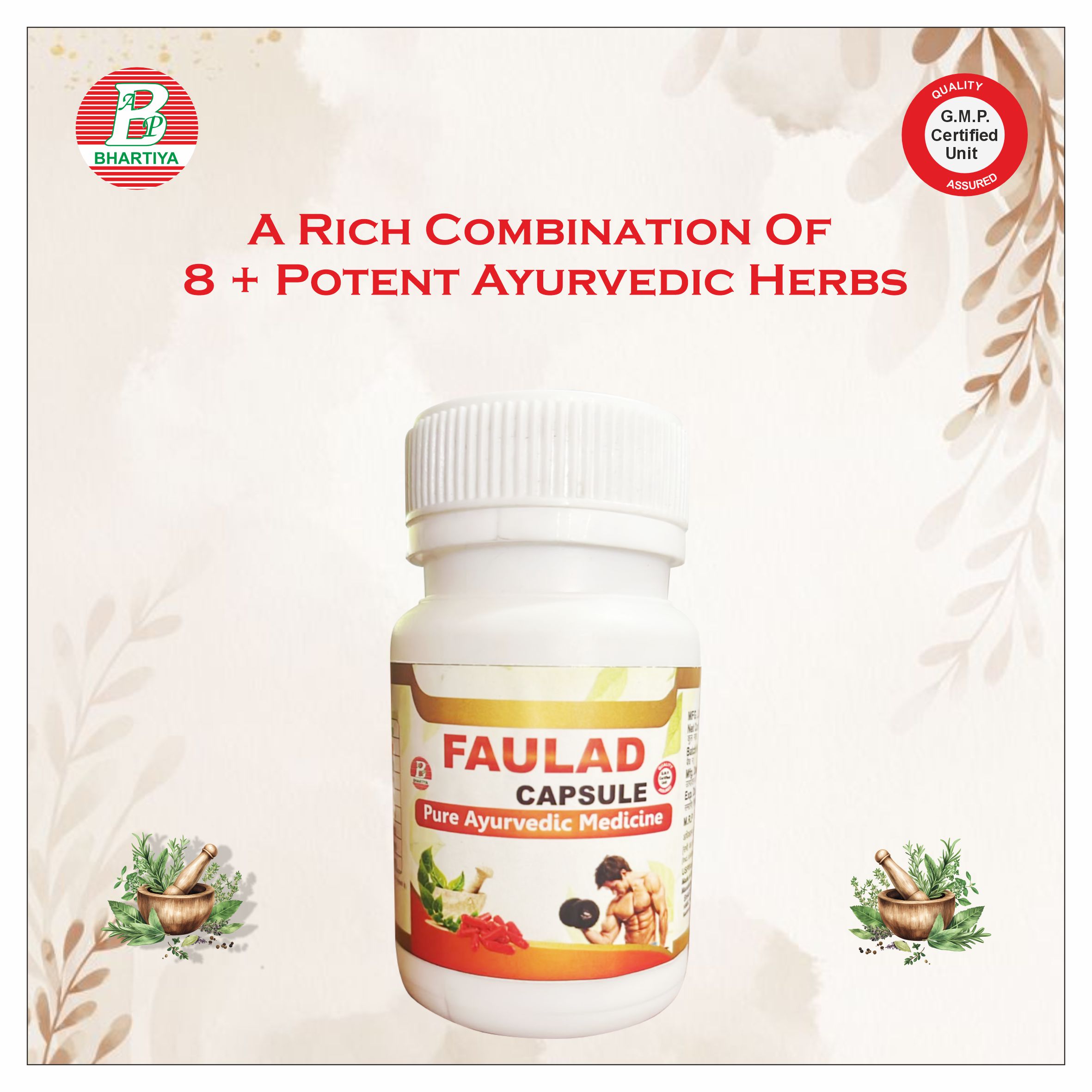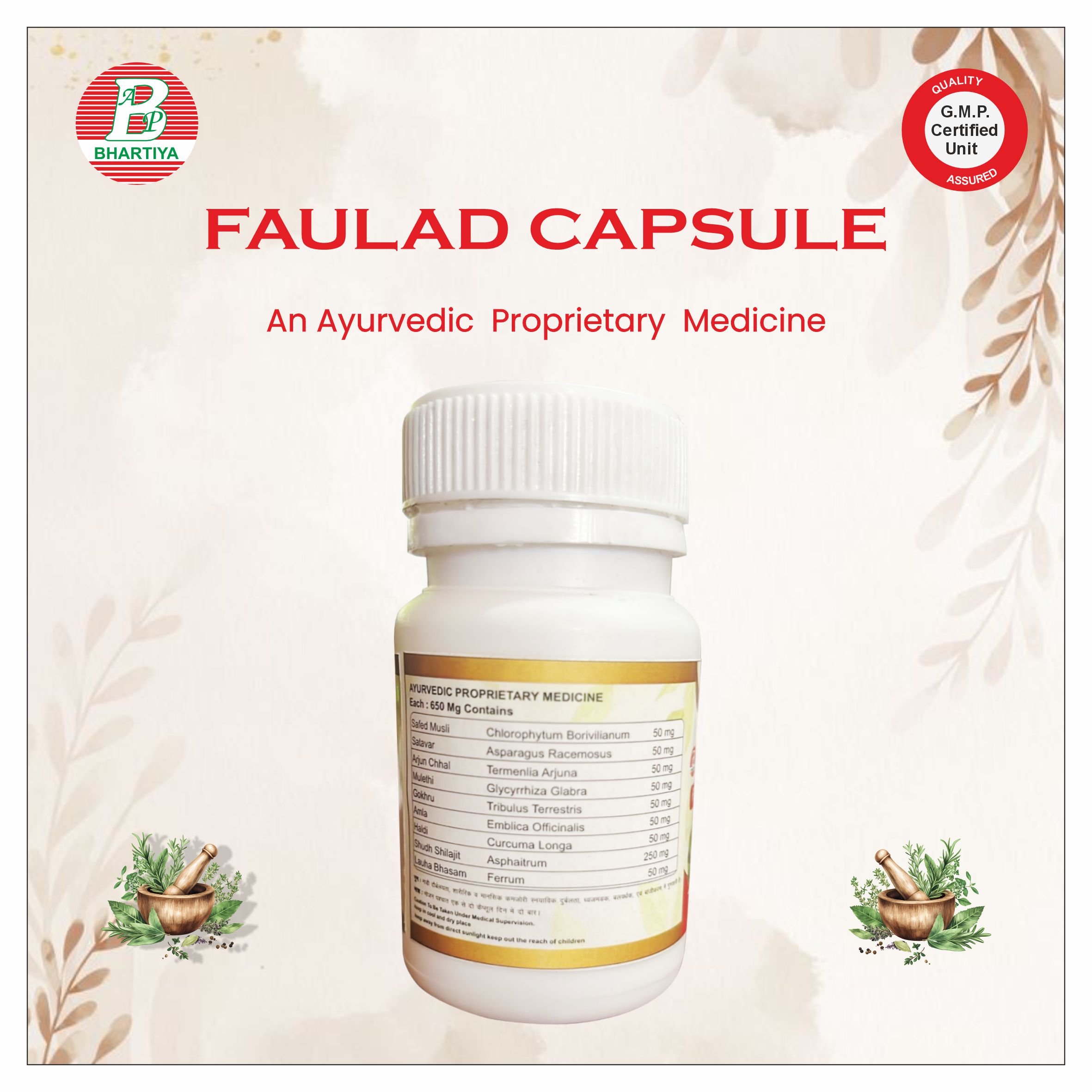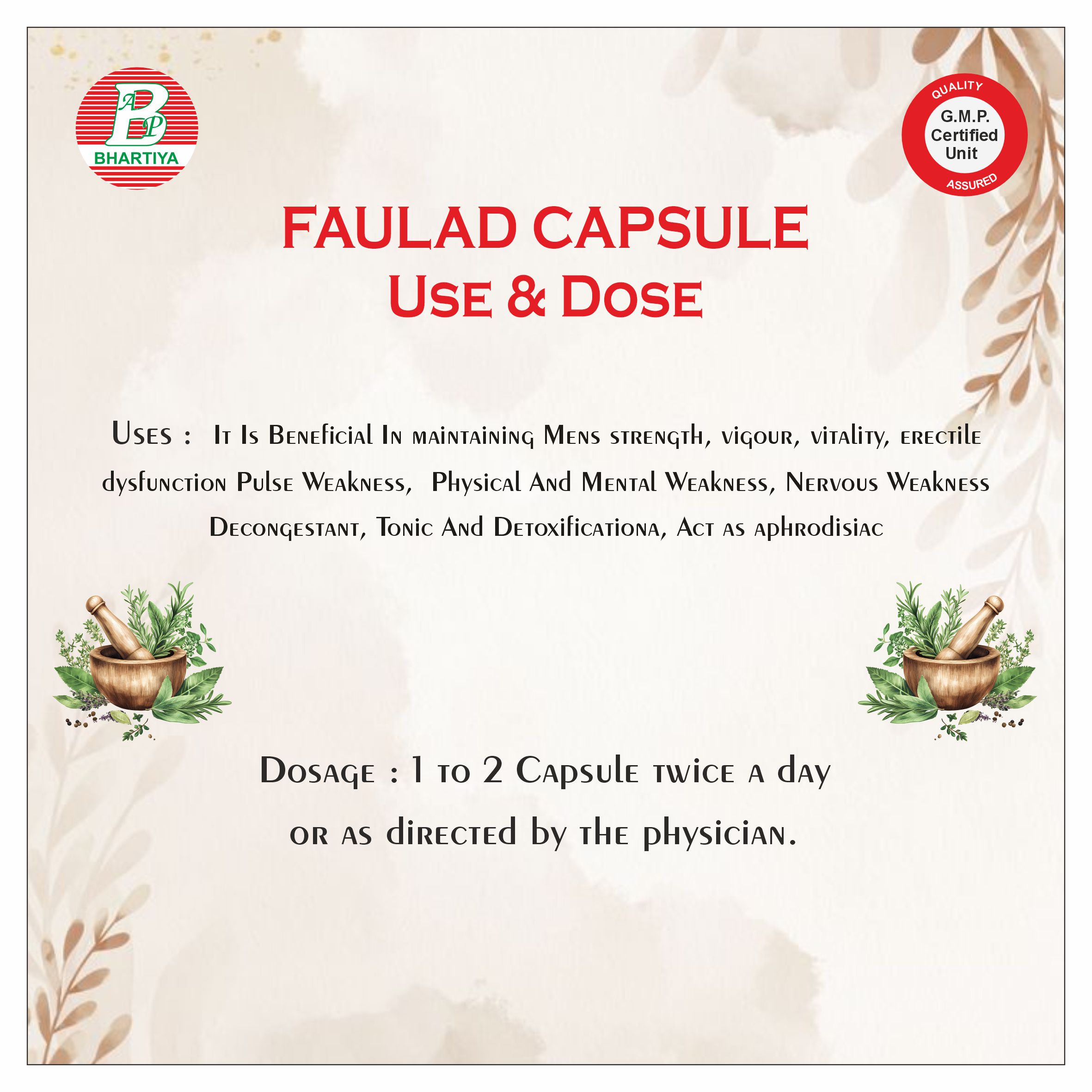 Faulad Capsule It is beneficial in pulse weakness, physical and mental weakness, nervous weakness, decongestant. tonic and detoxification.
