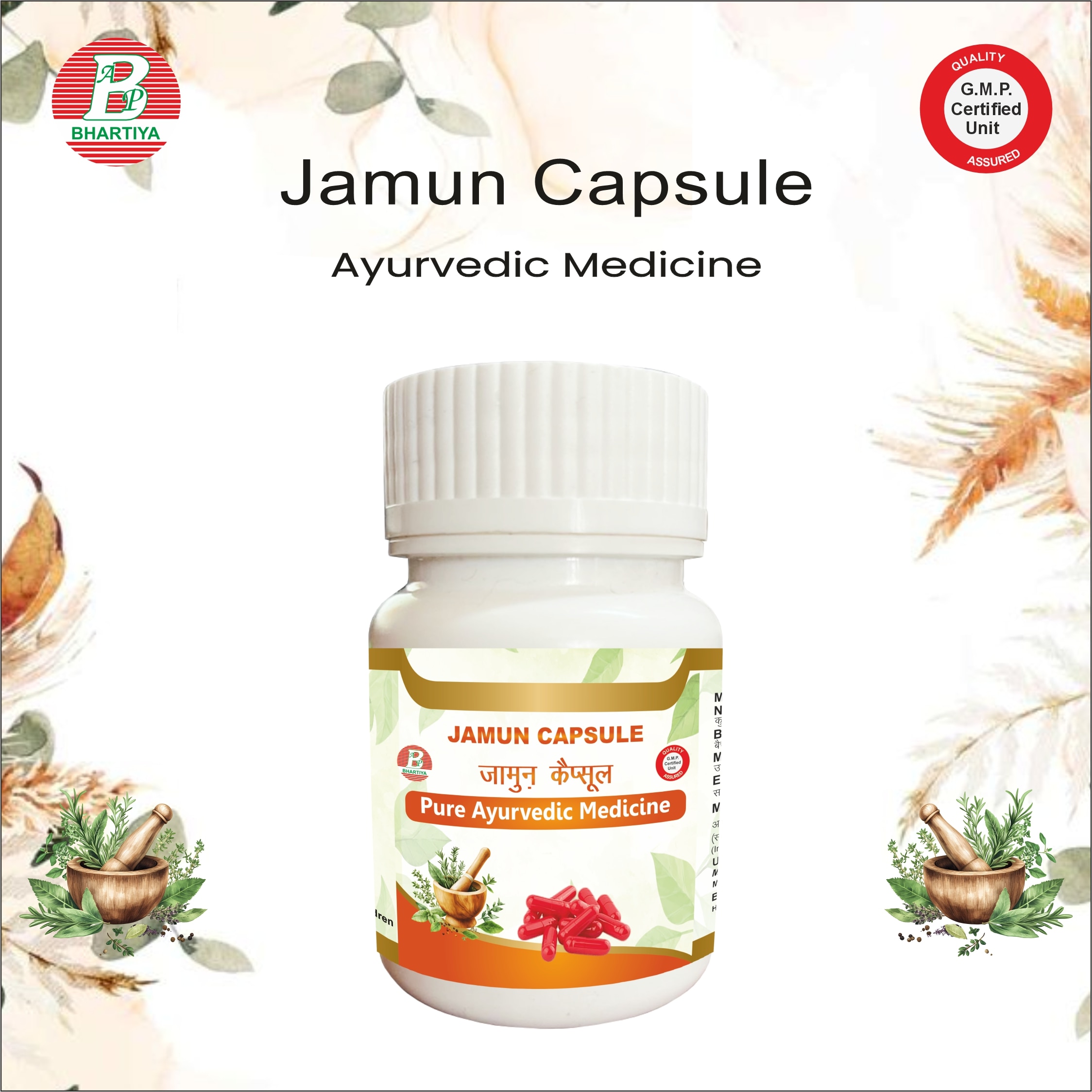 JAMUN The Dark Jewel of Ayurveda — “Jamun / Syzygium cumini” Jamun is a revered fruit in Ayurveda, known for its Raktashodhaka (blood-purifying), Madhumehahara (anti-diabetic), Deepana–Pachana (digestive), Rasayana (rejuvenative), and Vata-Kapha balancing properties. It is highly valued for maintaining healthy blood sugar, supporting digestion, improving immunity, and revitalizing the body. Traditionally, Jamun is considered especially effective in Madhumeha (diabetes), Pitta disorders, and digestive imbalances. CLASSICAL AYURVEDIC REFERENCES Charaka Samhita • Recommended in Madhumeha, Pitta disorders, and digestive disturbances • Acts as a Rasayana to improve overall vitality • Supports blood purification and metabolic balance Sushruta Samhita • Used for digestive disorders, Pitta imbalances, and urinary issues • Promotes tissue rejuvenation and detoxification Bhavaprakasha Nighantu • Highlights Jamun for Raktashodhaka, Madhumehahara, Rasayana, and Vata-Kapha balancing • Particularly emphasized for blood sugar management, anaemia, and general debility Unani & Folk Medicine • Known as “Indian Blackberry” • Traditionally used to control diabetes, reduce inflammation, improve digestion, and detoxify the body CLASSICAL STORY / TRADITIONAL ANALOGY Ancient Ayurvedic texts narrate: “Jamun is the dark-hued gem of the forest, whose seeds, fruit, and bark hold the power to sweeten the imbalance of blood, calm the fire of Pitta, and strengthen the weakened tissues. As the fruit ripens under the summer sun, so does the body regain strength and metabolic balance when nourished by Jamun.” Rishis and Acharyas prescribed Jamun to: • Control Madhumeha (diabetes) and high blood sugar • Support digestion and liver function • Purify blood and enhance tissue metabolism • Rejuvenate the body and support immunity BOTANICAL INFORMATION OF JAMUN Scientific Name: Syzygium cumini (L.) Skeels Family: Myrtaceae Order: Myrtales Genus: Syzygium Species: cumini Common Names: • Sanskrit: Jambū, Jambu, Krishnaphala • Hindi: Jamun • English: Indian Blackberry • Tamil: Neredu • Telugu: Jambhulamu • Kannada: Neredu • Bengali: Jam • Malayalam: Neredu Synonyms in Traditional Texts: • Madhumehahara – Anti-diabetic • Raktashodhaka – Blood-purifying • Rasayana – Rejuvenative • Deepana–Pachana – Improves digestion MORPHOLOGY OF JAMUN Plant Type: Large evergreen tree Height: 10–30 m Leaves: Simple, opposite, oblong-elliptic, dark green Flowers: Small, white to pinkish, fragrant Fruit: Dark purple to black berry, fleshy, sweet-sour taste Seeds: Oval, hard, light brown Bark: Thick, dark brown, astringent taste ECOLOGICAL PREFERENCES • Climate: Tropical and subtropical • Soil: Well-drained loamy, alluvial soil • Sunlight: Full sun to partial shade • Water Requirement: Moderate; tolerates drought once established • Altitude: 0–1500 m • Distribution: India (all over, especially Madhya Pradesh, Maharashtra, Tamil Nadu, West Bengal), Pakistan, Sri Lanka, Southeast Asia AYURVEDIC PROPERTIES (RASA–GUNA–VIRYA–VIPAKA) • Rasa: Tikta (bitter), Madhura (sweet), Kashaya (astringent) • Guna: Laghu (light), Ruksha (dry) • Virya: Sheeta (cooling) • Vipaka: Madhura (sweet) • Dosha Effect: Pitta-Vata pacifying, Kapha balancing THERAPEUTIC ACTIONS (KARMA) • Madhumehahara: Helps control blood sugar levels • Raktashodhaka: Purifies blood and detoxifies • Rasayana: Rejuvenative, strengthens immunity • Deepana–Pachana: Improves digestion and nutrient assimilation • Vata-Kapha balancing: Reduces inflammation and metabolic disorders INDICATIONS • Diabetes / high blood sugar • Digestive disorders and Pitta imbalances • Urinary and kidney issues • Blood impurities / anaemia • Chronic inflammation • General debility and weakness MODERN PHYTOCHEMISTRY & PHARMACOLOGY Major Constituents: • Anthocyanins (jamunins) – responsible for hypoglycemic effect • Ellagic acid, Gallic acid – antioxidant • Flavonoids and Tannins – digestive, anti-inflammatory • Essential oils and resins Pharmacological Actions: • Anti-diabetic / hypoglycemic • Antioxidant and anti-inflammatory • Hepatoprotective • Antimicrobial • Digestive support • Immunomodulatory CULTIVATION DETAILS • Propagation: Seeds, grafting, and air-layering • Sowing Time: Early monsoon • Harvesting: Fruits harvested in summer; seeds and bark processed for medicinal use • Irrigation: Moderate; drought-tolerant once established • Soil Preference: Well-drained loamy soil CLASSICAL DOSAGE • Powder (Churna): 3–6 grams/day • Seed Powder: 1–2 grams/day • Decoction / Extract: As prescribed by Ayurvedic practitioner • Fruit: 10–20 berries/day for mild metabolic support JAMUN FORMULATIONS BY BHARTIYA AYURVEDIC PHARMACY At Bhartiya Ayurvedic Pharmacy, we prepare a range of Jamun (Syzygium cumini) formulations following classical Ayurvedic methods as described in Charaka Samhita, Sushruta Samhita, Bhavaprakasha Nighantu, and other Ayurvedic Granthas. Each product is crafted to retain the therapeutic potency, purity, and efficacy of Jamun for blood sugar management, digestive support, detoxification, and rejuvenation. 1. Jamun Capsule Description: Bhartiya Ayurvedic Pharmacy Jamun Capsules are prepared using standardized Jamun seed and pulp extract, ensuring convenient daily use while preserving the full therapeutic potential of the herb. Key Actions: • Supports healthy blood sugar levels • Promotes digestion and liver function • Acts as a blood purifier and rejuvenative • Reduces inflammation and metabolic imbalances • Enhances immunity and general vitality Dosage: • 1–2 capsules twice daily with warm water after meals, or as advised by an Ayurvedic practitioner Precautions: • Monitor blood sugar if taking antidiabetic medications • Avoid overdose • Use under supervision in pregnancy and lactation 2. Jamun Powder (Churna) Descr