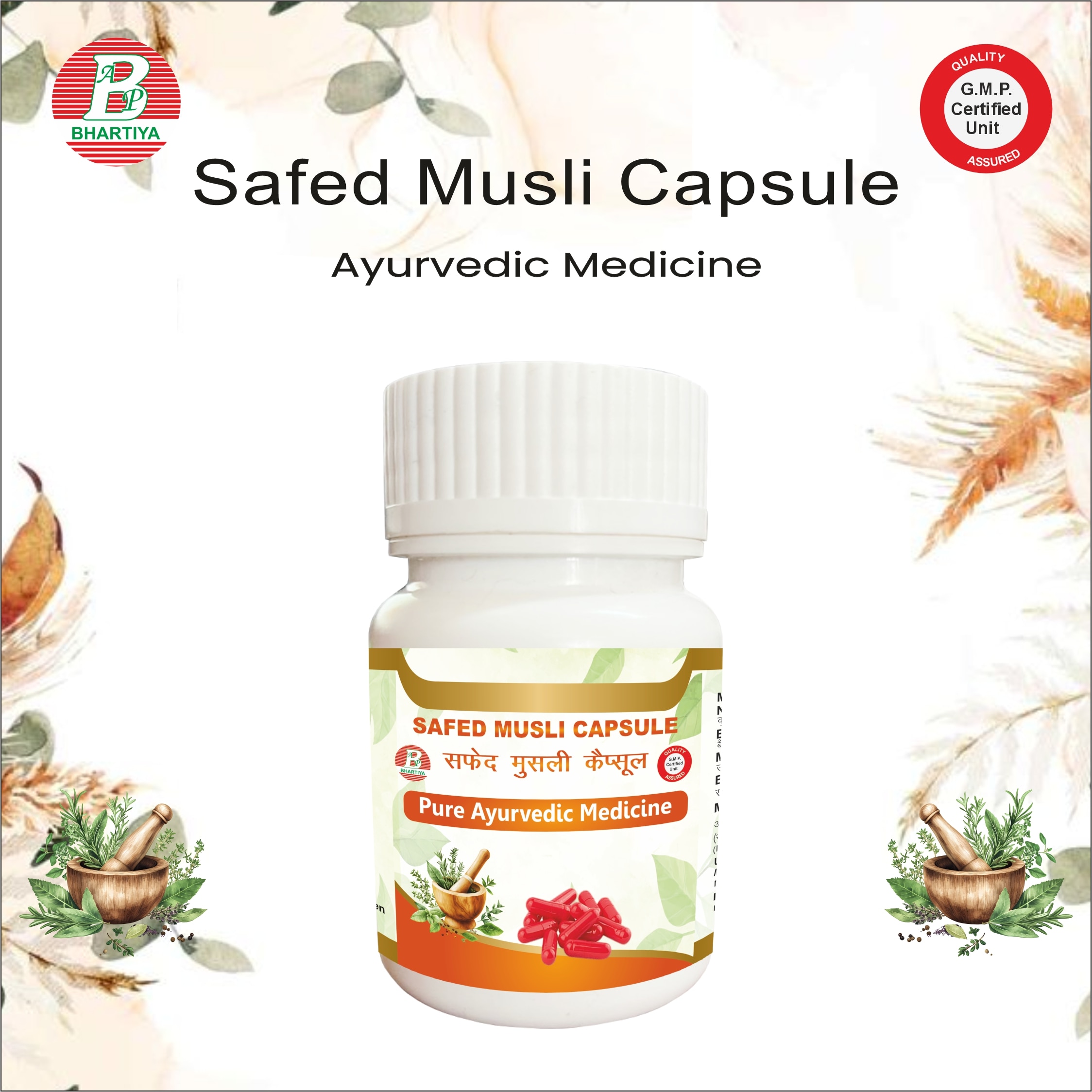 Safed Musali Safed Musali (Chlorophytum borivilianum) The “King of Aphrodisiacs” – Root of Vitality Safed Musali, literally meaning “white musli,” is one of the most revered rejuvenative herbs in Ayurveda. Known for enhancing strength, vitality, and reproductive health, it is celebrated as a powerful Rasayana for both men and women. Traditionally, it is considered a Vata-Pitta pacifier, enhancing stamina, immunity, and overall well-being. In Ayurveda, Safed Musali is valued as a Rasayana (rejuvenative), Vajikarana (aphrodisiac), and Balya (strength-promoting) herb, widely recommended for physical weakness, debility, infertility, and age-related decline. Botanical Information of Safed Musali • Scientific Name: Chlorophytum borivilianum Sant. et Fernand. • Family: Asparagaceae • Order: Asparagales • Genus: Chlorophytum • Species: borivilianum Common Names: • Sanskrit: Musali, Safed Musali, Shweta Musali • Hindi: Safed Musali • English: White Musli • Tamil: Shweta Musali • Telugu: Shweta Musali • Kannada: Shweta Musali Ayurvedic Synonyms in Nighantus: • Bhavaprakasha Nighantu : Musali, Shweta Musali • Raja Nighantu: Musali • Dhanvantari Nighantu: Shweta Musali Morphology of Safed Musali • Plant Type: Perennial, herbaceous, tuberous root • Stem: Small, slender, sometimes underground rhizome • Leaves: Long, lanceolate, bright green • Flowers: Small, white or greenish-white, arranged in racemes • Roots: Thick, tuberous, white – medicinally used part • Habit: Low-growing, slow-growing, drought-tolerant Ecological Preferences • Climate: Tropical and subtropical • Soil: Well-drained sandy loam, rich in organic matter • Sunlight: Full sun to partial shade • Moisture: Moderate; sensitive to waterlogging • Altitude: Up to 1200 m above sea level • Habitat: Plains, dry areas, scrublands, herbal gardens Distribution • India: Maharashtra, Madhya Pradesh, Rajasthan, Karnataka, Andhra Pradesh • Asia: Endemic to India; also cultivated in tropical regions Classical Ayurvedic Properties Property Details Rasa (Taste) Madhura (sweet), Tikta (bitter) Guna (Qualities) Guru (heavy), Snigdha (unctuous) Virya (Potency) Ushna (hot) Vipaka Madhura (sweet) Dosha Effect Tridosha-hara, mainly Vata-Pitta pacifying Karma (Therapeutic Actions) Rasayana, Vajikarana (aphrodisiac), Balya (strength-giving), Medhya (intellect-supportive), Varnya (skin-enhancing) Therapeutic Actions According to Acharyas: 1. Rejuvenation & Vitality: Enhances strength, stamina, and immunity 2. Reproductive Health: Aphrodisiac; improves sperm count, libido, menstrual health 3. Metabolic Support: Reduces weakness, promotes digestion and nutrition absorption 4. Nervous System: Supports memory, intellect, and nervous system function Story from Acharya Charaka: Charaka Samhita mentions Musali as a “king among roots” for balya, Vrishya, and Vajikarana effects. It was advised by Acharyas to Raja Harishchandra’s warriors to regain strength after battles. The root was considered so potent that even a small dose was enough to restore vigor and stamina. Modern Phytochemistry • Saponins: Steroidal saponins – enhance strength, libido, immunity • Alkaloids: Bioactive compounds for nervous and reproductive health • Polysaccharides: Immunomodulatory and antioxidant effects • Other Constituents: Proteins, vitamins, minerals – supports general vitality Cultivation • Propagation: By seeds or root tubers • Sowing Time: Early monsoon (June–July) • Spacing: 30–45 cm between plants • Watering: Moderate; avoid waterlogging • Fertilization: Organic manure; compost preferred • Harvesting: Roots harvested after 18–24 months when tubers mature • Ecological Note: Conserves soil fertility, drought-tolerant Classical Dosage • Powdered root: 3–6 g/day • Decoction (Kwatha): 40–60 ml/day • Paste with milk or ghee: As per Vajikarana preparations Safety: • Generally safe; avoid excessive dose which may cause mild gastric upset • Pregnant or lactating women should use only under supervision Classical Ayurvedic Formulations 1. Musli Pak / Avaleha: Rejuvenative and aphrodisiac tonic 2. Chyawanprash Variant with Musali: Enhances strength and immunity 3. Vajikarna Rasayana: Root powder combined with milk, ghee, and honey 4. Medhya Formulations: For memory and nervous system support Modern Preparations 1. Safed Musali Capsule / Tablet: Standardized root extract for vitality 2. Safed Musali Powder (Churna): For tonic, Vajikarana, and Rasayana use 3. Safed Musali Milk Decoction: Strengthens muscles, stamina, and immunity 4. Combination Tonics: With Ashwagandha, Shatavari, Gokshura for enhanced rejuvenation Dosage Examples • Root powder: 3–6 g/day with milk or honey • Capsules: 1–2 capsules twice daily after meals • Paste / Avaleha: As per classical guidance for rejuvenation and aphrodisiac effect Safed Musali Formulations by Bhartiya Ayurvedic Pharmacy At Bhartiya Ayurvedic Pharmacy, we prepare a range of Safed Musali (Chlorophytum borivilianum) formulations following classical Ayurvedic methods as described in Charaka Samhita, Sushruta Samhita, Bhavaprakasha Nighantu, and other Ayurvedic Granthas. Each product is crafted to retain the full therapeutic potency, purity, and efficacy of the herb, ensuring benefits for strength, vitality, reproductive health, immunity, and overall rejuvenation. 1.Safed Musali Capsule Description: Standardized capsule containing powdered extract of Safed Musali root. Convenient modern formulation for daily use. Key Actions: • Supports strength, stamina, and vitality • Acts as a natural aphrodisiac and reproductive tonic • Enhances immunity and general health • Tridosha-hara (balances Vata, Pitta, and Kapha) Dosage: • 1–2 capsules twice daily after meals with warm water or as advised by a practitioner Precautions: • Avoid overdose – may cause mild digestive upset • Use under supervision during pregnancy or lactation